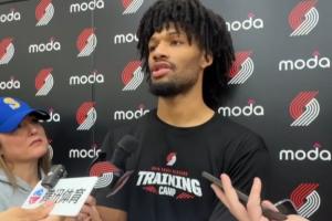 开拓者今日队内训练,训练后夏普接受采访谈到了杨瀚森,小吧整理了部分采访内容。