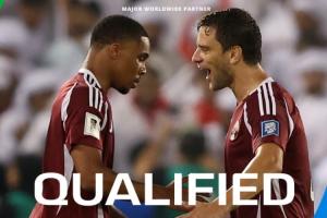 体育资讯10月15日讯 世预赛亚洲区第四阶段比赛,卡塔尔2-1战胜阿联酋,首次通过预选赛晋级世界杯。