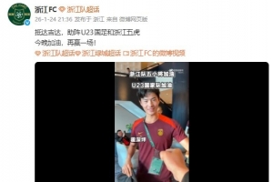体育资讯1月24日讯 今晚U23亚洲杯决赛,U23国足将与日本U23队争冠。赛前,浙江队社媒晒出为中国队助威的视频,前方人员与来自浙江队的五人进行击拳。