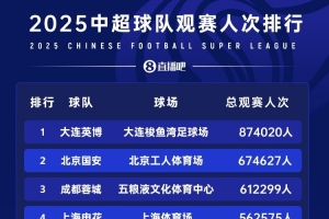 下一篇: 2队票房收入破亿!2025年中超16队总票房5.81亿元,增幅37%