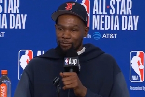 体育资讯2月16日讯 NBA全明星正赛赛前,杜兰特接受了媒体采访。