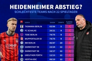 此役过后,海登海姆3胜4平15负仅积13分,排名德甲垫底。
