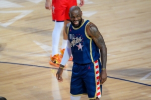在美国星条队对阵美国新星队的比赛最后时刻,詹姆斯冰球助攻福克斯命中压哨三分,帮助美国星条队以42-40绝杀美国新星队。