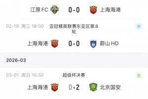 下一篇: 惨淡开局!上海海港6天内先输超级杯、再输中超新赛季首战