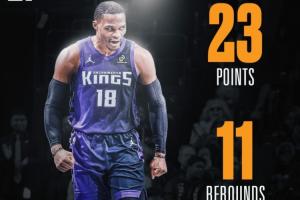 本场比赛,国王球星拉塞尔·威斯布鲁克发挥出色,不仅在三分心外保持着高效,组织端也亮点十足,频频送出秒传,喂得雷诺心花怒放!此外,失误控制方面他也表现的极其出色。