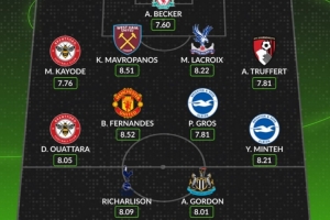 WhoScored英超第30轮最佳阵