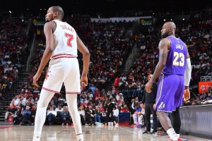 谈到湖人球星詹姆斯本场多次完成精彩暴扣,杜兰特说:“对此我都不再感到惊讶了。他拥有惊人的运动天赋,他是划时代的运动员,他在意比赛,热爱这项运动。他很悉心照料身体,这就是他能做到的事。自从他还是一个孩子起,他就为此打造好了身体。