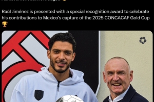 PFA官方表示:“劳尔-希门尼斯获得了一项特别表彰奖,以纪念他为墨西哥队赢得2025年中北美及加勒比地区金杯赛冠军所做出的贡献。”