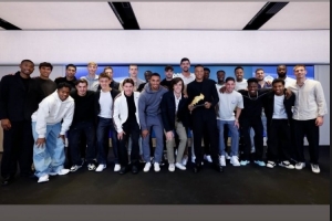 姆巴佩领取了上赛季欧洲金靴奖,维尼修斯社媒晒出全队合照,配文:“祝贺我的兄弟,姆巴佩。”