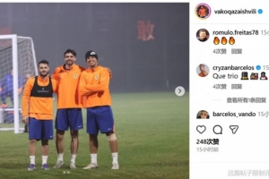 体育资讯11月1日讯 在个人社媒,泰山外援瓦科-卡扎伊什维利晒出与泽卡、克雷桑的合影。