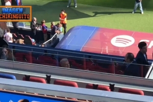 巴萨今日在诺坎普球场进行公开训练,俱乐部主席拉波尔塔来到现场。