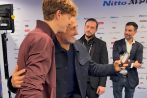 体育资讯11月17日讯 近日,尤文图斯主帅斯帕莱蒂观看了在都灵举行的ATP总决赛,他在赛后与赢得冠军的意大利选手辛纳合影留念。