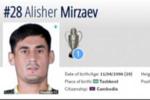 体育资讯11月17日讯 根据国际足联官方消息,柬埔寨归化原乌兹别克斯坦球员阿利舍尔·米尔扎耶夫。