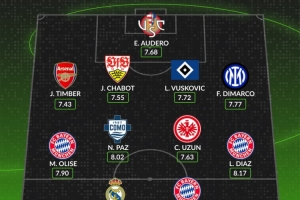 后卫:廷伯(阿森纳)、沙博特(斯图加特)、武什科维奇(汉堡)、迪马尔科(国米)