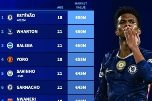 1、埃斯特旺(切尔西),18岁,8000万欧