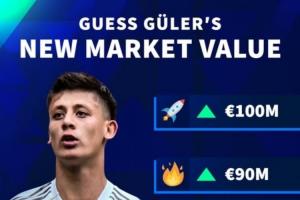 体育资讯12月10日讯 德转将在周五更新西甲身价,德转预热了居莱尔的身价变化,最高可能达到1亿欧元,最低升高至7500万欧元。
