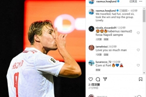 霍伊伦社媒晒出比赛照片,庆祝球队取胜,配文:“我们远征客场,享受比赛,轰入6球,拿下胜利并领跑小组!太美妙了。”