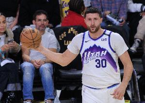 爵士内线努尔基奇本场比赛在跟文班亚马的对位中表现得相当出色,不仅能够将放空他的三分机会投进,还能够利用自己吨位强打文班拿分。