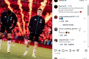 此役维尔茨为利物浦踢满全场,赛后他在社交媒体上晒出比赛照片,配文:“我们想要更多,但仍然为能成为这支球队的一份子感到自豪!感谢球迷在客场的支持。”
