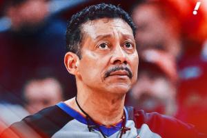 在首节还剩2分38秒时,59岁的肯尼迪在跑动中右腿受伤,随后他站在底线吹停了比赛。肯尼迪跪倒在场边接受医生检查,最终被轮椅推出场,他的头上还盖着一条毛巾,他多次擦脸疑似在哭泣,表情很痛苦。